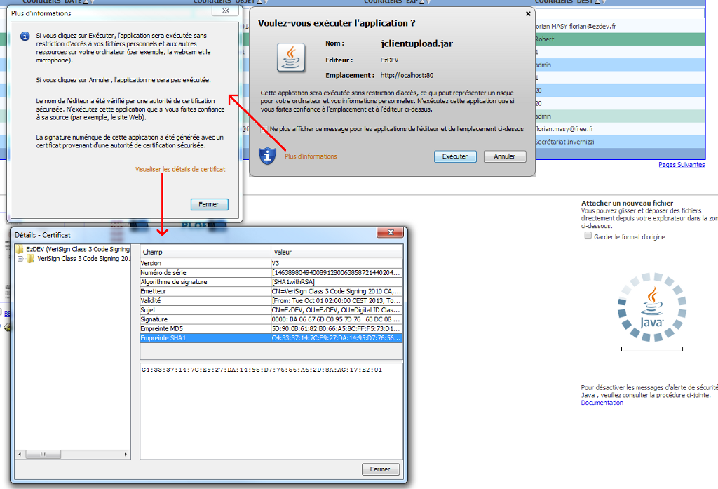 http://www.java.com/fr/download/help/appsecuritydialogs.xml Au sujet des avertissements et autres invites de sécurité.