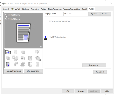 2. Aller sur l'onglet “Avancé” puis sur “Impression par défaut”*